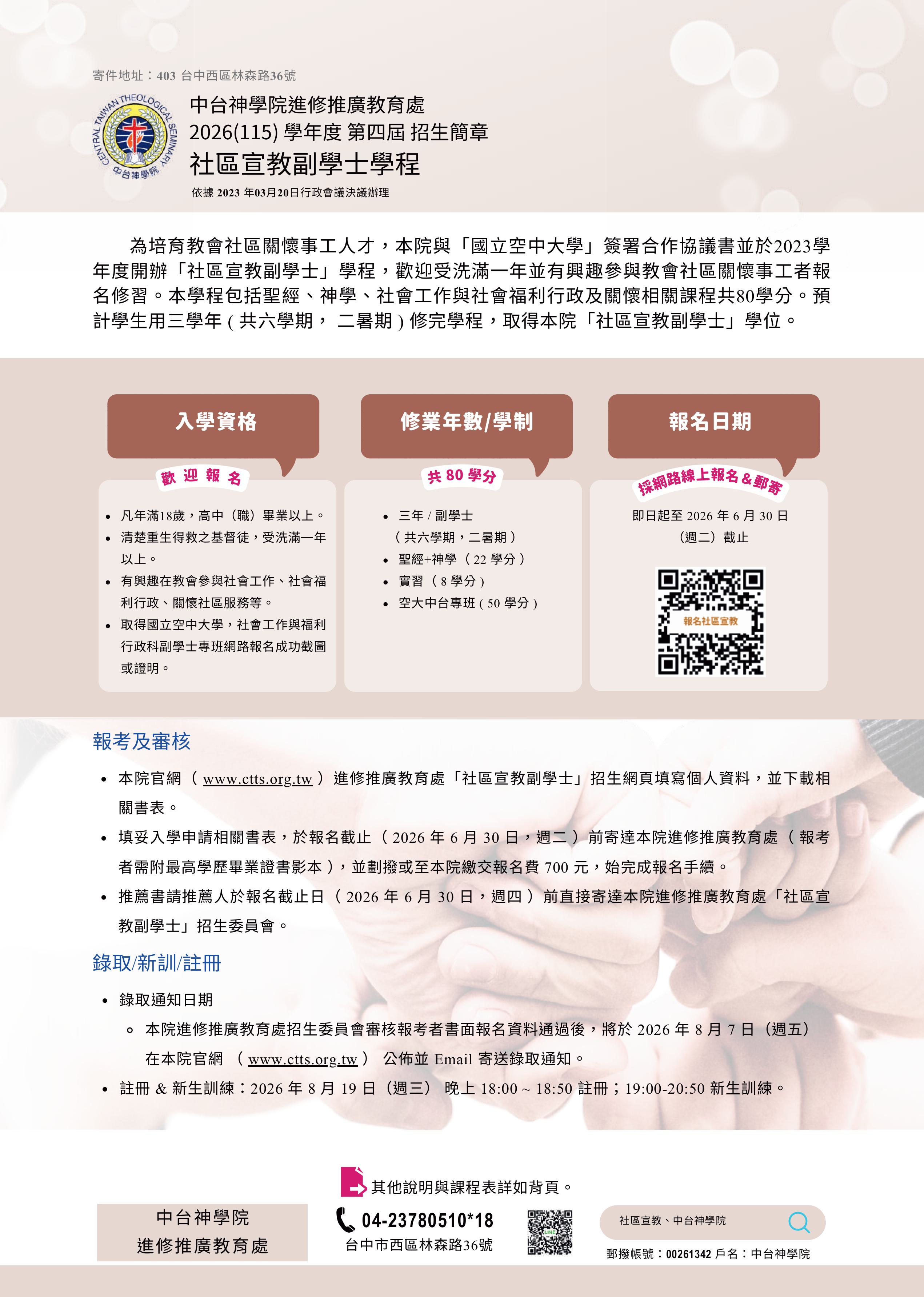 社區宣教副學士 招生中